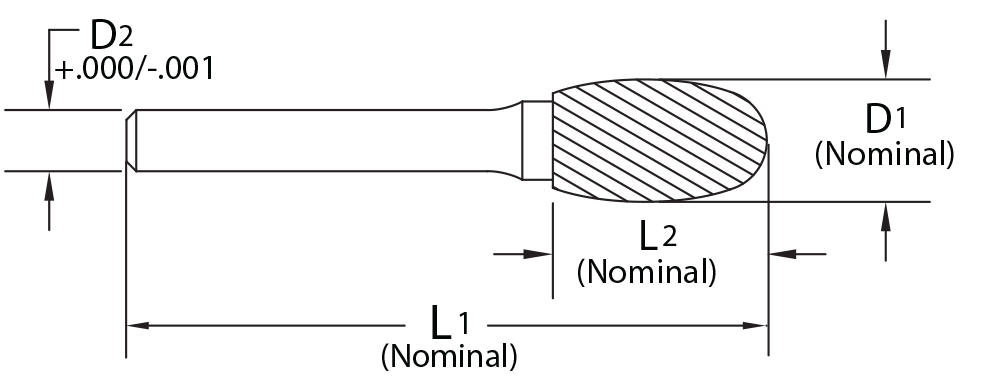 • Solid carbide 1/4" sizes and below, brazed construction over 1/4"