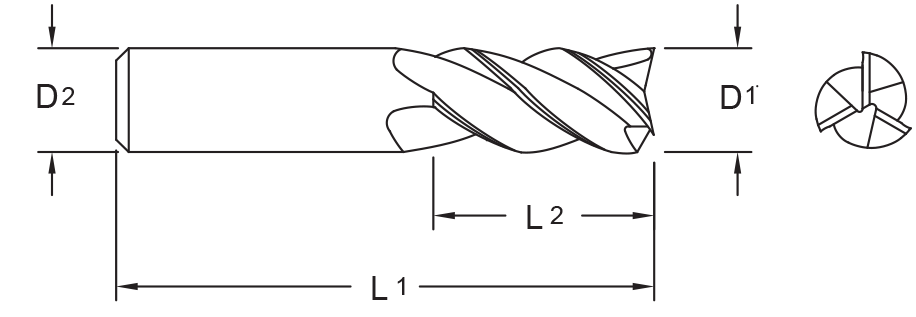 - Center cutting, standard flute lengths, square end