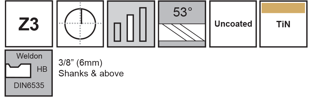 - Shanks 3/8" (6mm) & above with Weldon Flat