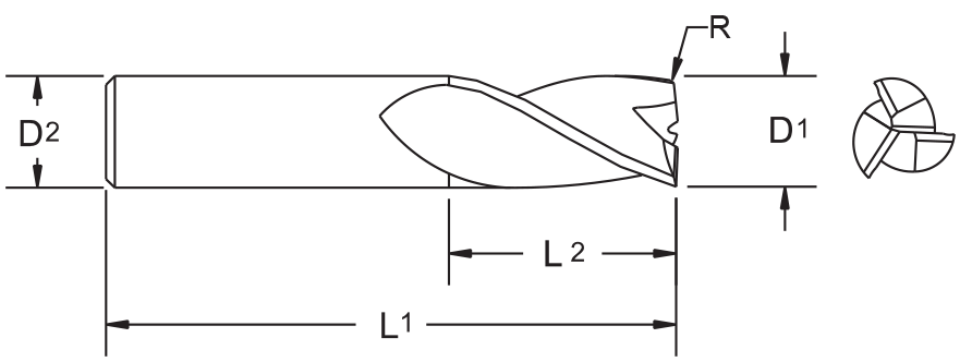 Solid Carbide TuffCut® GP 3 Flute End Mill, Corner Radius with