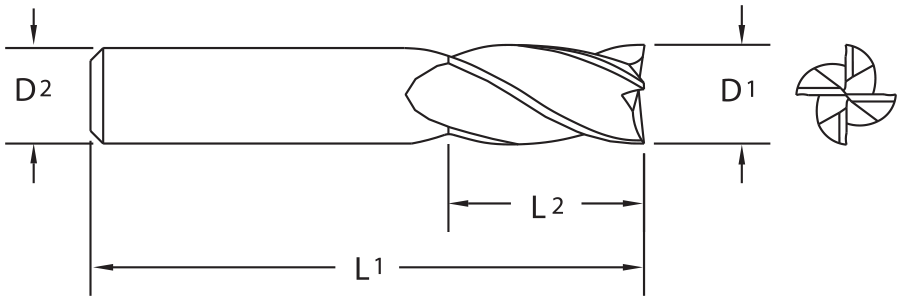 Solid Carbide TuffCut® GP 4 Flute End Mill, NC Tolerance