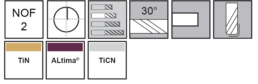 - Uncoated or available with TiN, Altima® and TiCN coating. T=TiN, A=ALtima® (ALTiN), C=TiCN coated