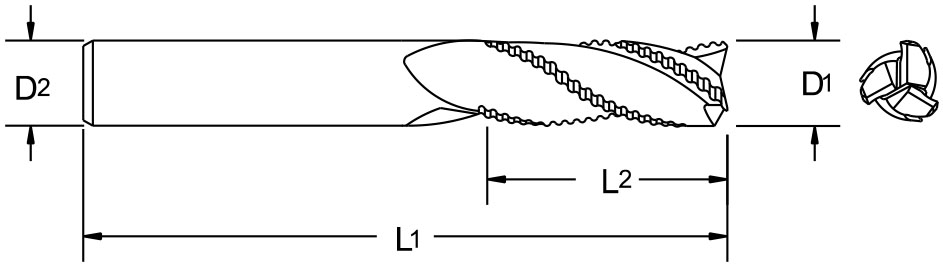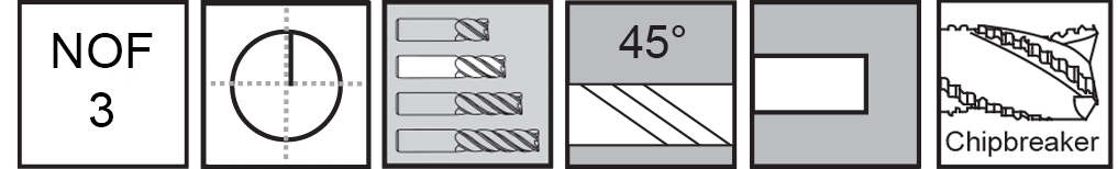 Chipbreaker design with high helix ideal for rapid stock removal in aluminum alloys.