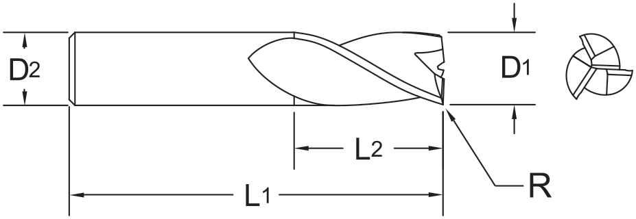Designed for Extreme High Speed Machining of Aluminum and Non-Ferrous Metals. 3 Flute geometry promotes exceptionally smooth cutting action.
