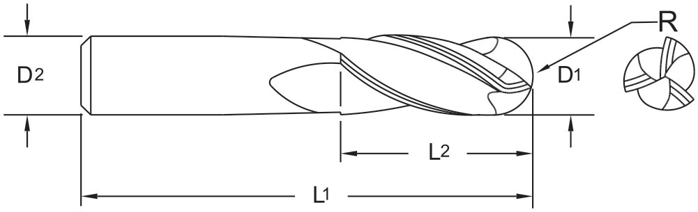 Solid Carbide TuffCut® X-AL 3 Flute Ball Nose End Mill