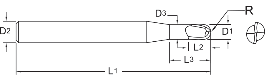 Solid Carbide TuffCut DM® 2 Flute Ball Nose End Mill