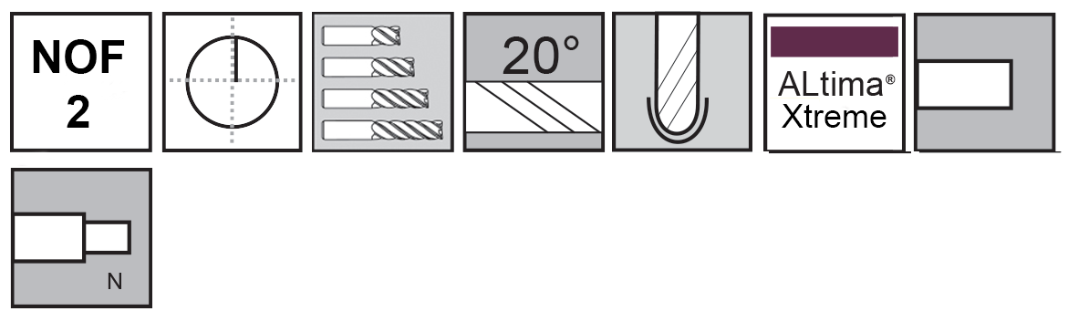 Designed for high-productivity milling of hard and difficult to cut materials Rc 45-60.