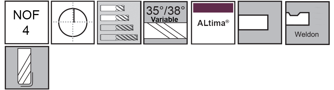 Designed for EXTREME productivity. Unique flute geometry reduces harmonics at increased feeds and speeds.