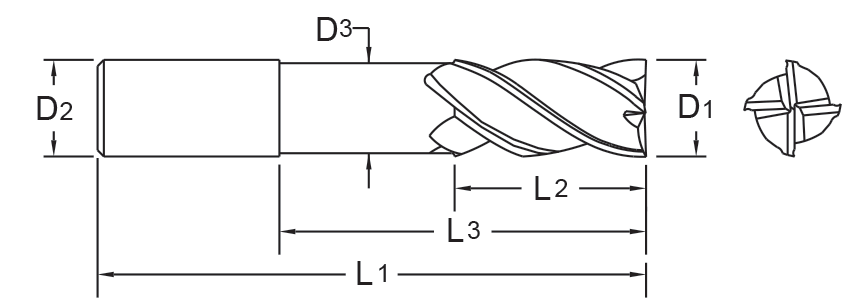 Solid Carbide TuffCut® XR 4 Flute Extended Reach End Mill