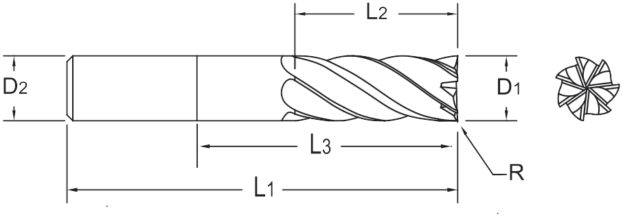 Solid Carbide TuffCut® XR7, 7 Flute End Mill, Neck Relief