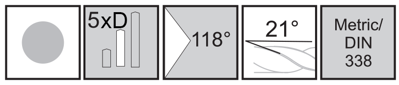 Four facet drill point minimizes drill wander and assures accurately sized holes. For Inch Size Jobber Drills See Series 204.