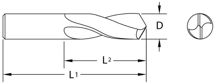 Shorter overhang reduces deflection and vibration and increases drill accuracy and improves tool life. Allows high feed rates with good chip flow. Four facet drill point minimizes drill wander and assures accurately sized holes. For Inch size stub drills, see Series 206.