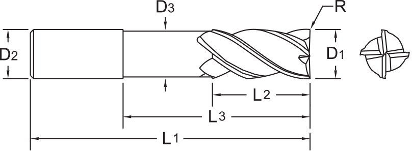 Solid Carbide TuffCut® XT 4 Flute End Mill Necked Relief