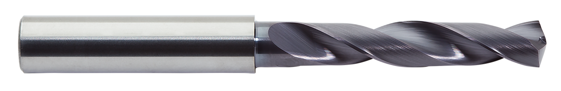 Designed for high performance drilling in a broad range of materials. Low thrust point geometry reduces cutting forces, allowing heavier feed rates and improved tool life. Single margin design performs better in High Temp Alloys. The XD Drill is designed for increased edge strength on the point with enhanced post coating surface treatment for improved chip evacuation.