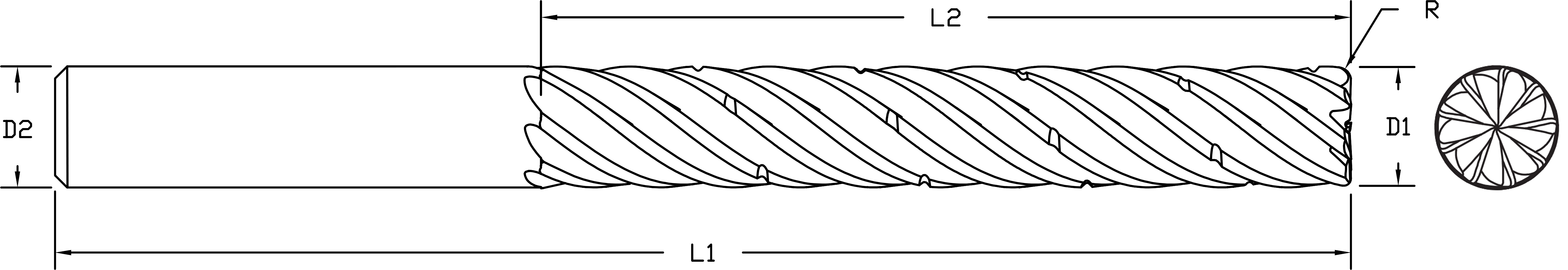 - Uneven number of flutes reduces harmonics to provide stable machining zones