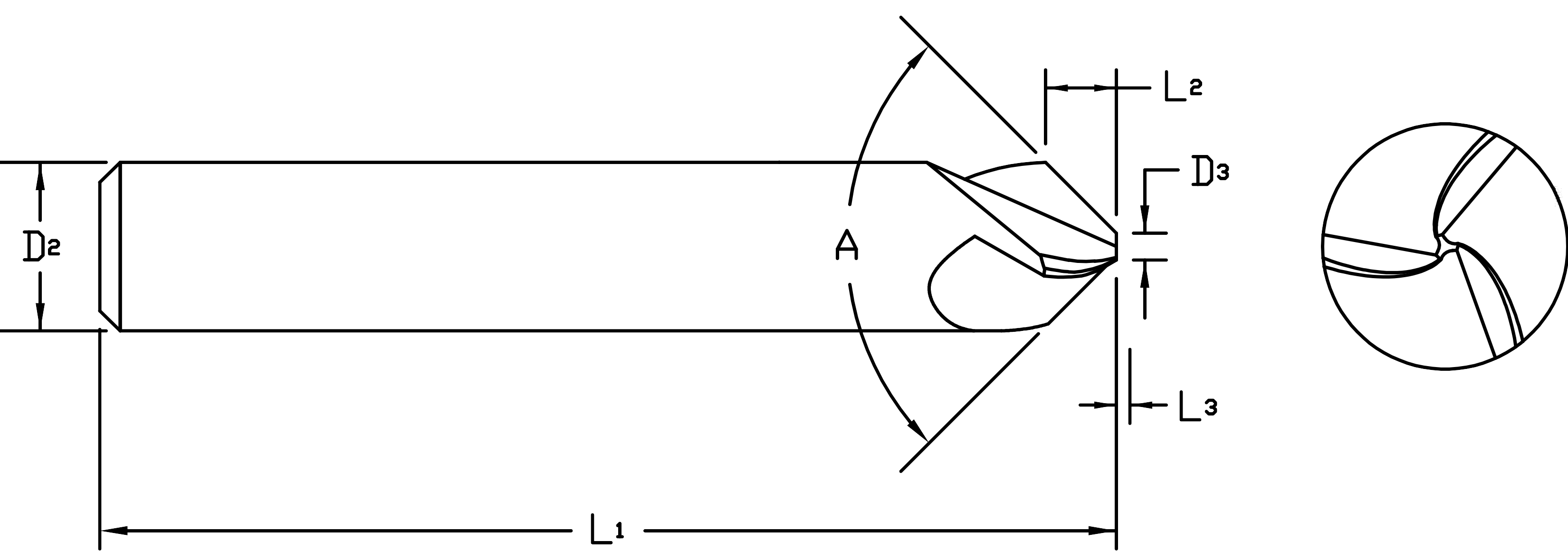 Tool No. EDP Included Angle (A) Shank Diameter (D2) Flute Length (L2) Overall Length (L1) Theoretical Tip Length (L3) Tip Diameter (D3) Coating Shank Type Available List Price