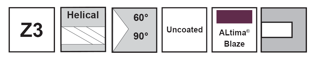 .2500 3HC025001B 35012 60° 1/4 .165 2-1/2 .052 .060 ALtima® Blaze Straight 31.00 38.12