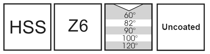 - Available with 60°, 82°, 90°, 100° and 120° included angles