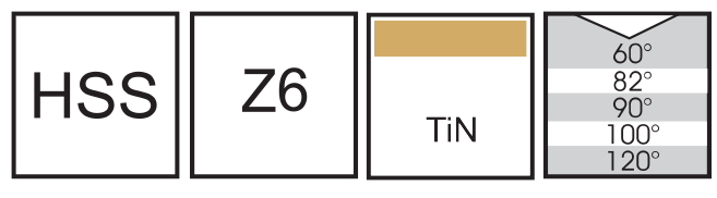 - Available with 60°, 82°, 90°, 100° and 120° included angles