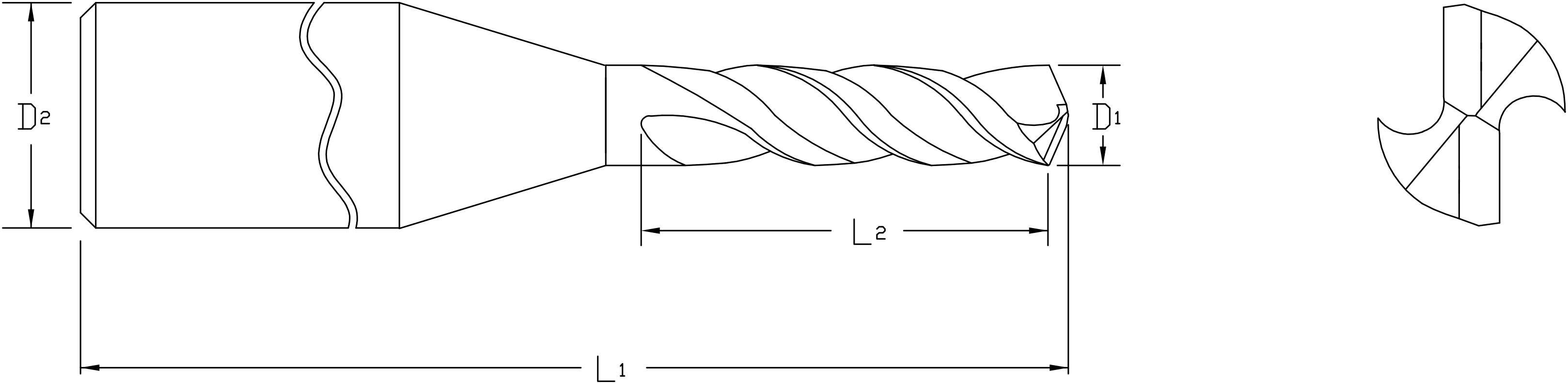 - Recommended max drill depth = L2 - 1.5 x D1