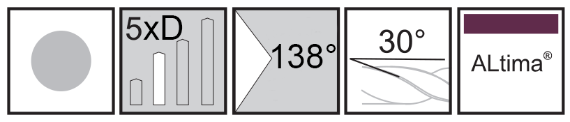 Designed for high performance drilling in a broad range of materials. The web thinned point helps to reduce cutting forces during the drilling operation. All sizes have post coating polish to improve chip evacuation. Sizes 0.8mm and above have honed cutting edges on the point which increases the strength of the cutting edges.